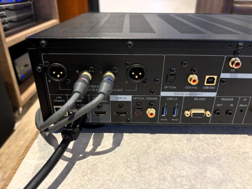 Qualidade de áudio: Possui dois conversores ESS Sabre 8-channel DACs, uma saída de áudio-apenas HDMI para reduzir ruído, saídas de áudio analógico balanceadas XLR e 7.1 canais, e um amplificador de fone de ouvido de alta potência.