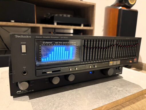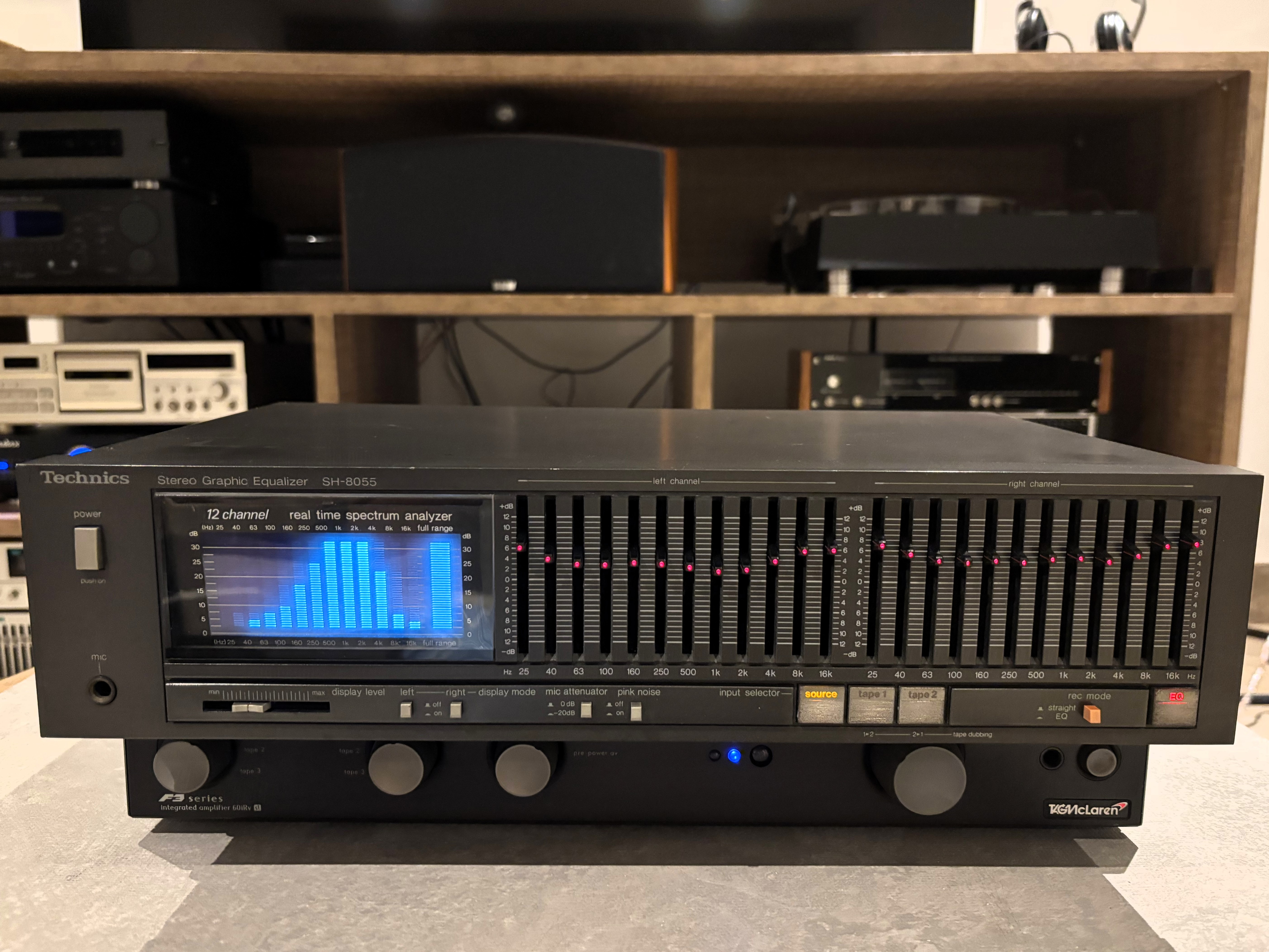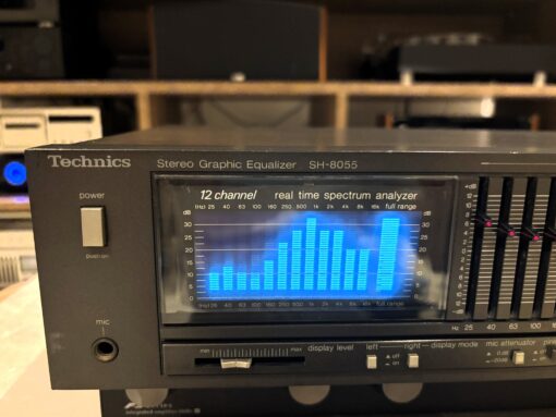 Lindo equalizador gráfico analógico de 12 bandas Technics SH 8055, com leds vermelhos em todos os potenciômetros e lindo display azul.